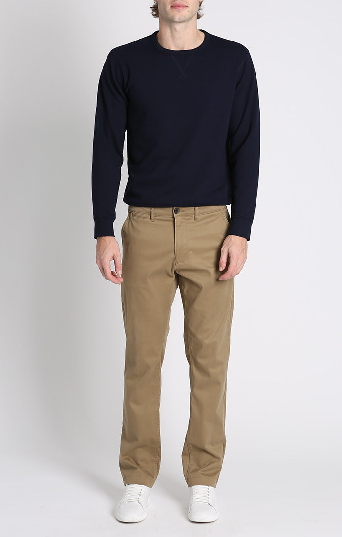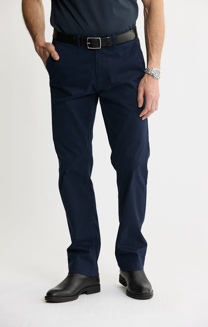 Crafted from our signature sateen-finished stretch cotton, these pants offer softness, comfort, and effortless wear. Designed in a timeless straight fit for versatile style.