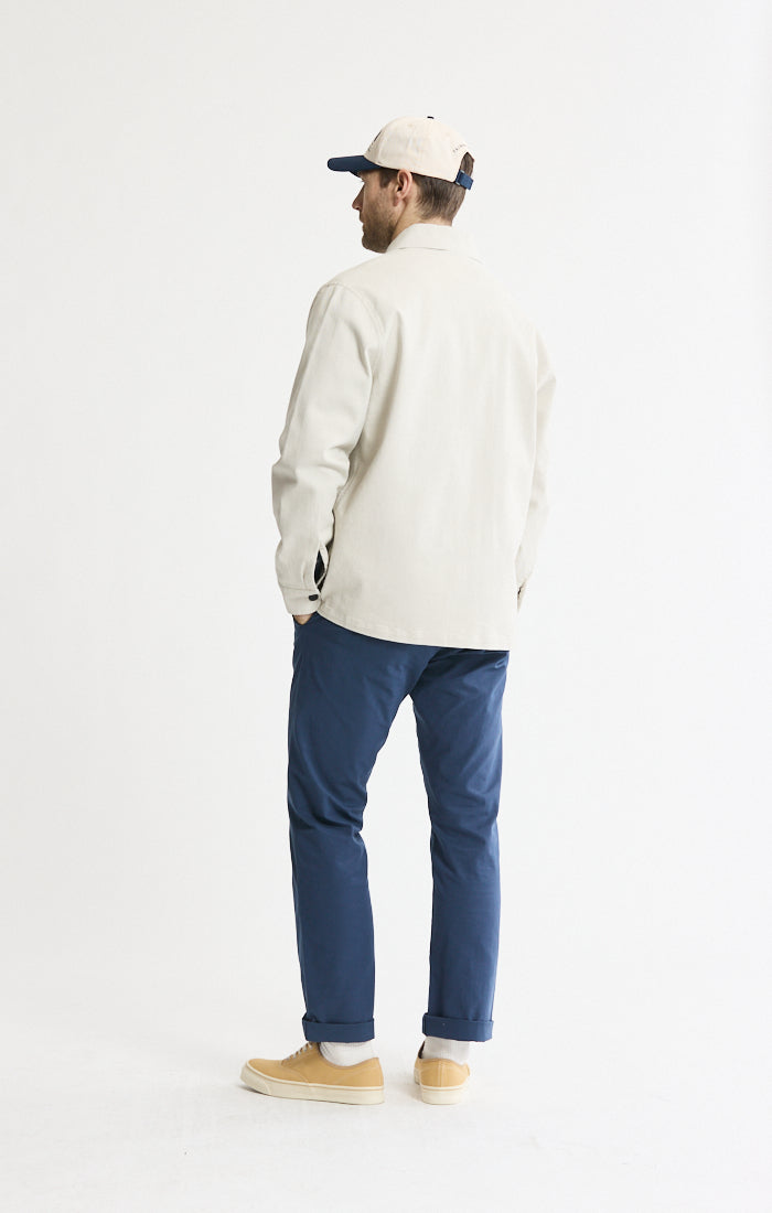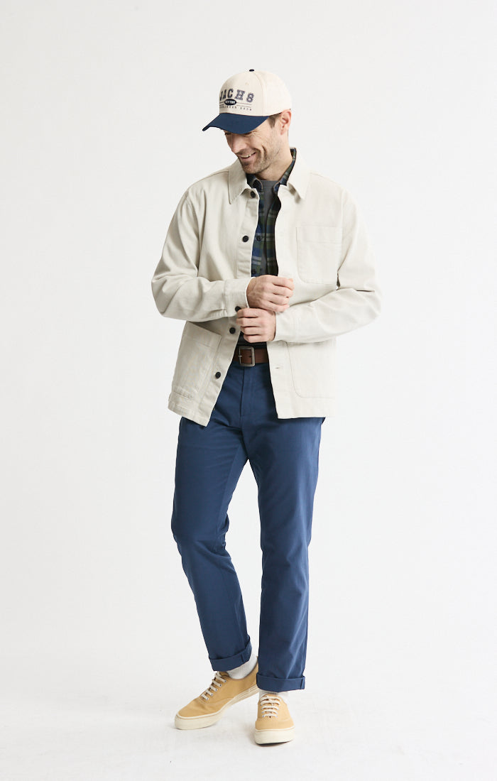 Our Brushed Bull Denim Chore Coat combines classic workwear heritage with modern comfort, making it an essential layer for transitional seasons or everyday versatility. Crafted from premium brushed bull denim, a sturdy yet soft fabric with a subtle twill texture, this coat offers exceptional durability while feeling broken-in from the first wear.