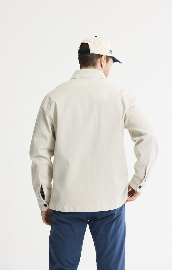 Detail: Point collar, Full button-front closure with matte black buttons, Functional patch pockets: one at the chest and two lower hip pockets, Long sleeves with buttoned cuffs, Straight hem that hits at the hip
