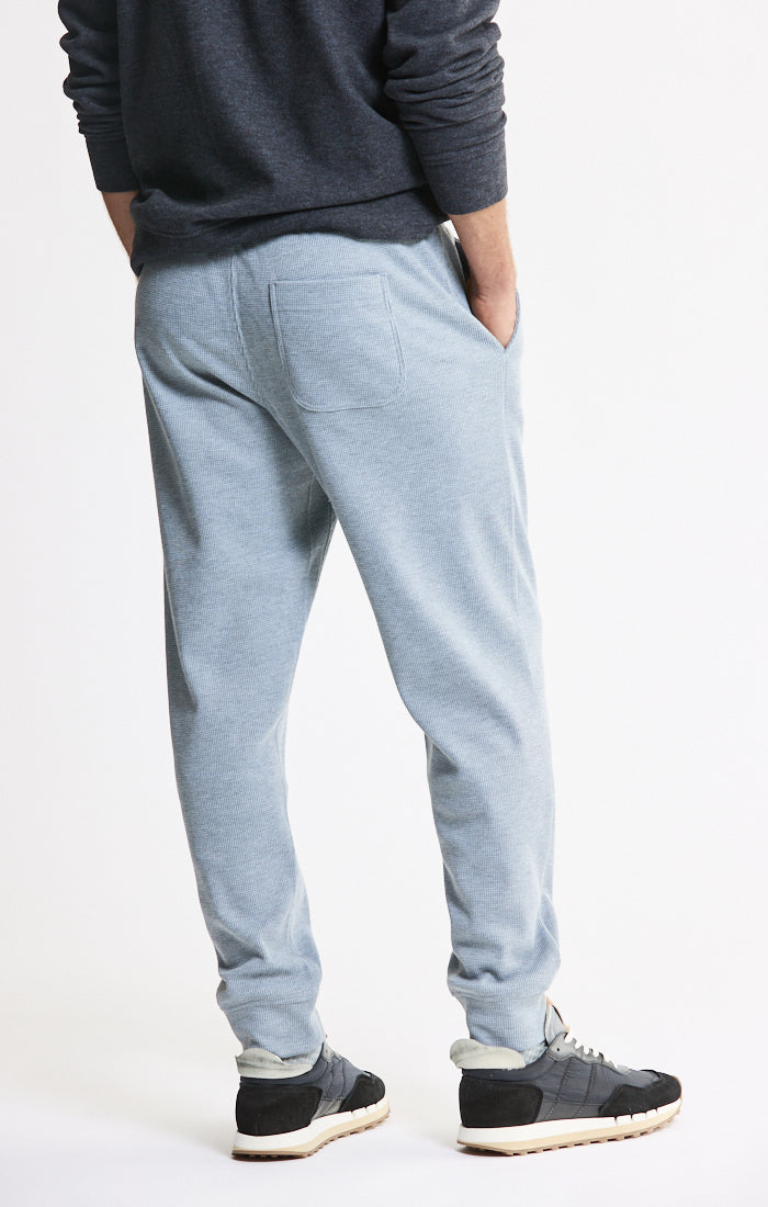 Comfort that looks as good as it feels. These Brushed Waffle Joggers are crafted from an ultra-soft cotton blend with a subtle texture that gives them a clean, elevated look. Designed with a relaxed fit through the leg and ribbed cuffs for a modern silhouette. Finished with an adjustable drawstring waistband and side pockets for everyday ease - perfect for lounging, weekend errands, or travel.