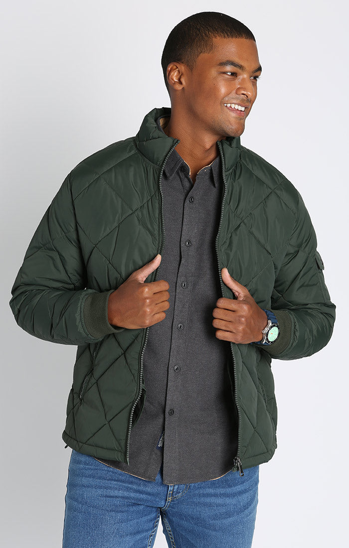 A classic full zip quilted puffer jacket perfect for Fall Weather.