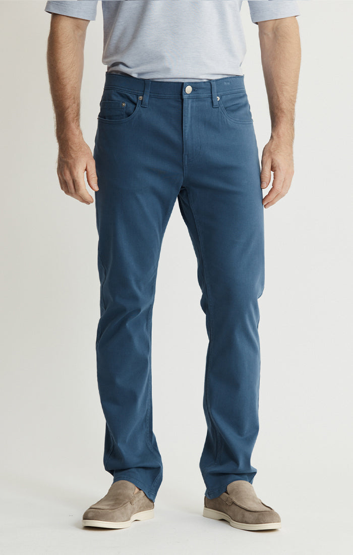 A timeless 5-pocket design with an inner flex waistband for all-day comfort. Crafted from a perfectly weighted cotton-rayon blend, ideal for spring-light yet substantial. The peached finish adds an ultra-soft touch for a smooth, comfortable feel.