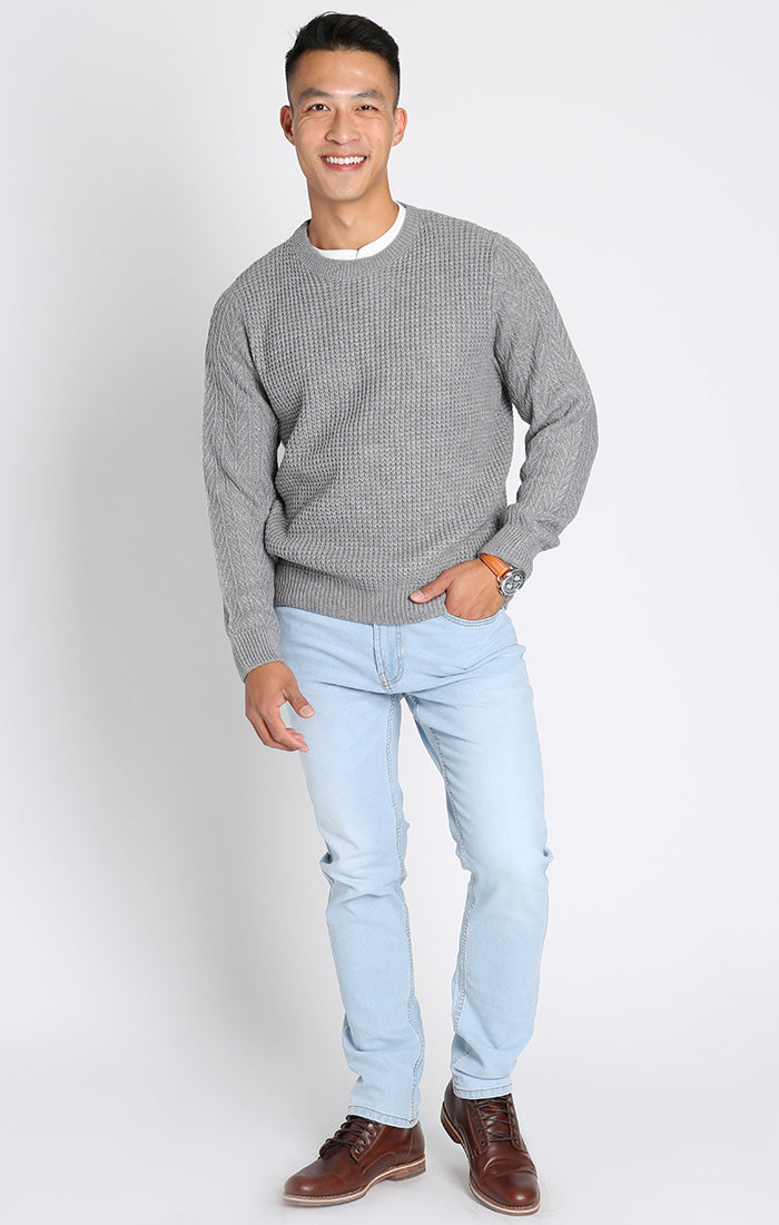 Mixed Stitch Waffle Crewneck Sweater
