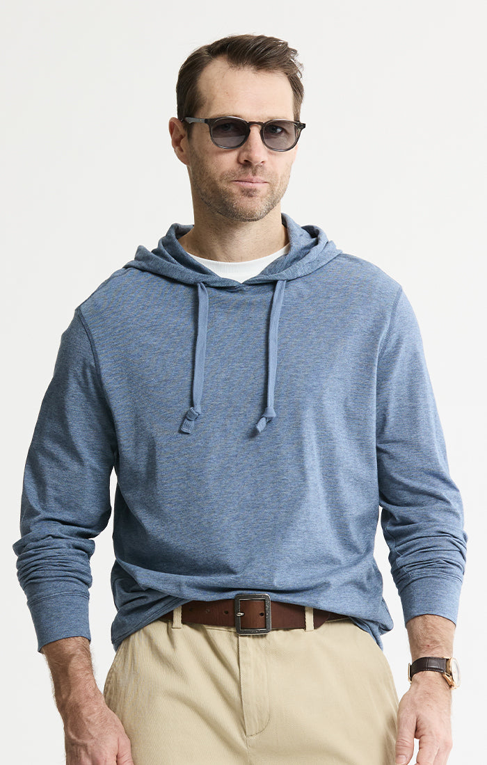 Our Performance Hoodie Pullover is the perfect mix of comfort and polish. Made from a premium cotton-modal blend with just the right amount of stretch, it’s soft, breathable, and easy to wear all day. Finished with a clean silhouette, adjustable drawstring hood, and rib trim, this is the hoodie you’ll reach for whether you’re traveling, running errands, or heading out for a casual night.