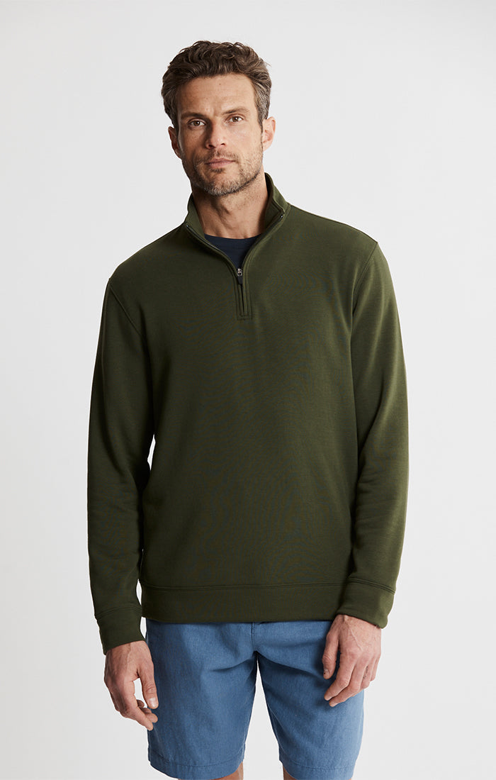 Detail: Pullover Quarter Zip, Soft Brushed Fleece Backing, Added Stretch