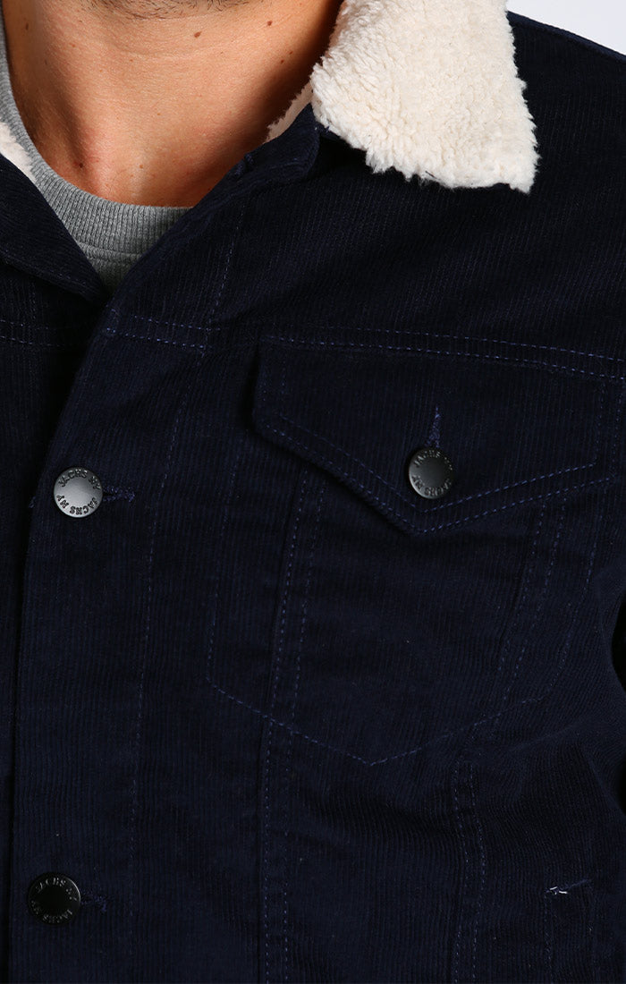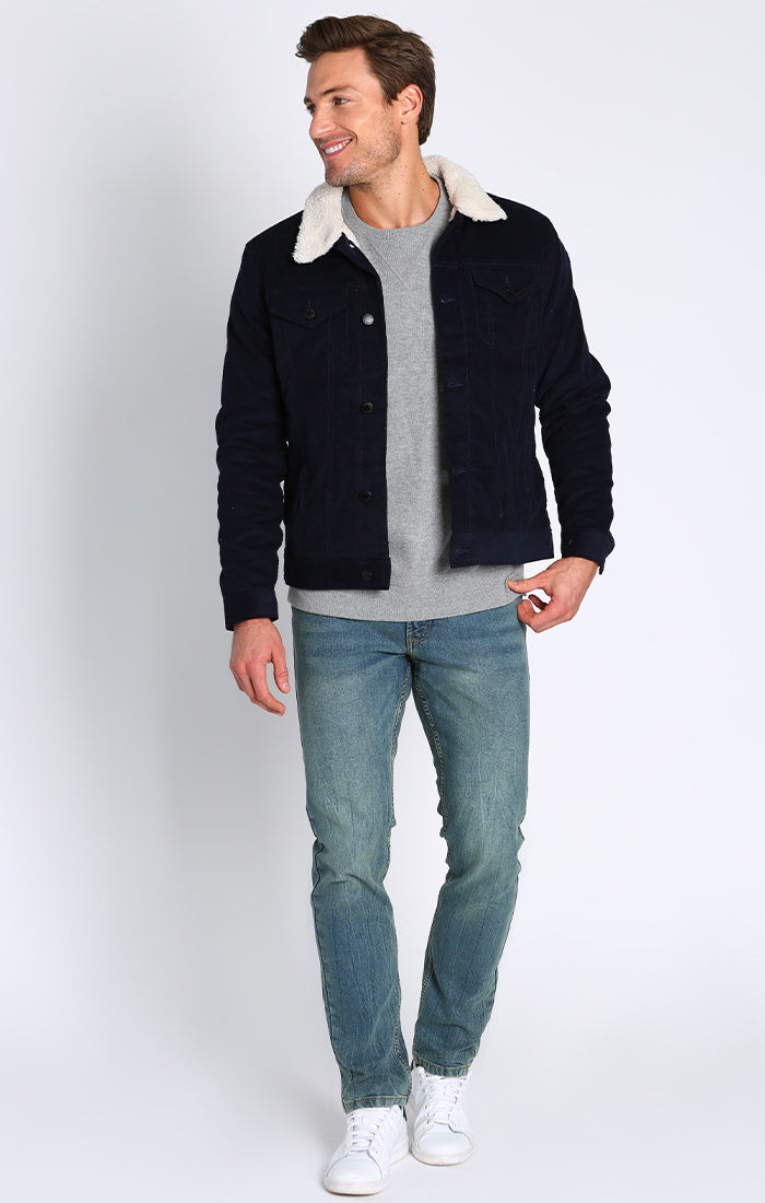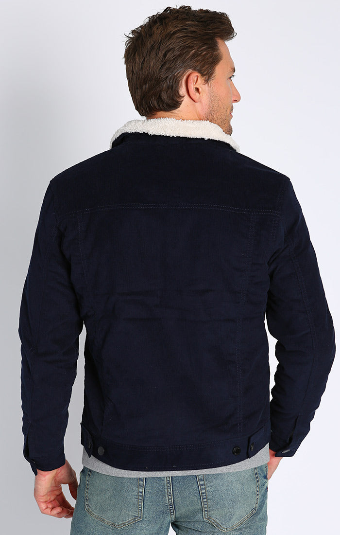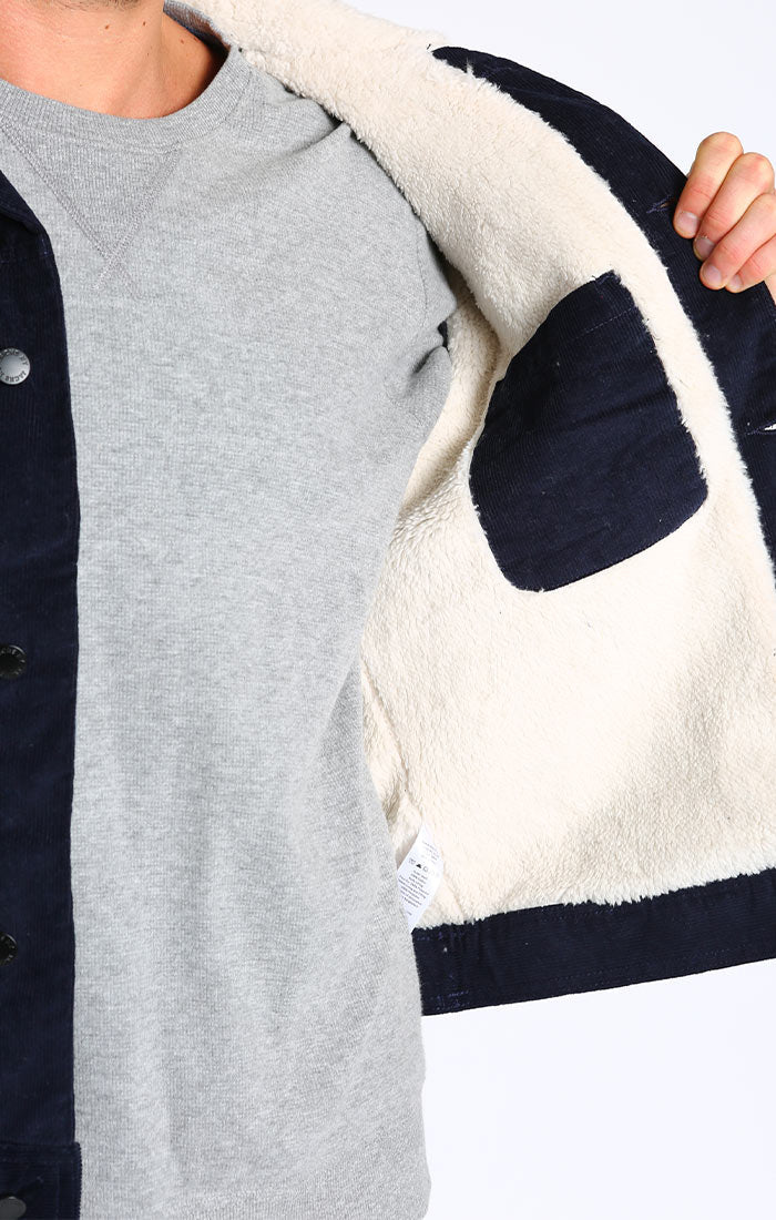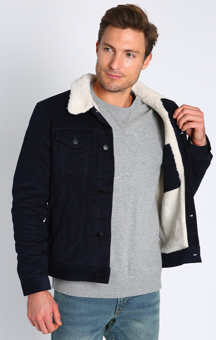 A sherpa lined trucker jacket in our stretch corduroy fabric.