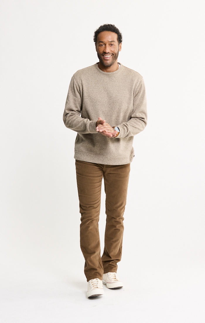 This Stretch Sweater Fleece Crewneck delivers the warmth of a sweater with the relaxed feel of your favorite sweatshirt. The fabric is a lightweight sweater fleece knit that feels soft against the skin and adds just the right amount of insulation without overheating. It stretches naturally, moves with you, and keeps its shape wear after wear.