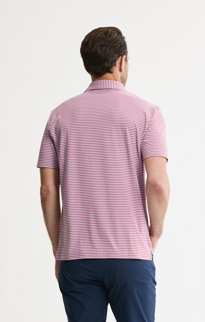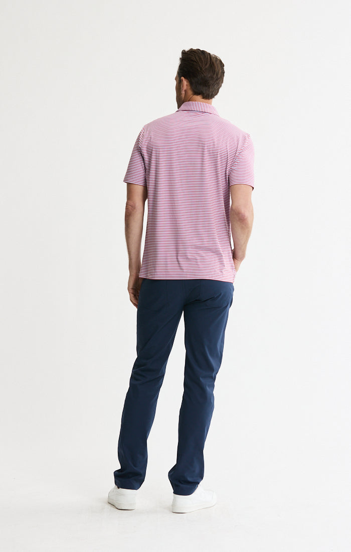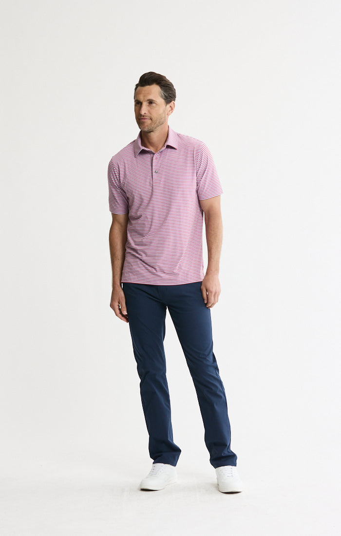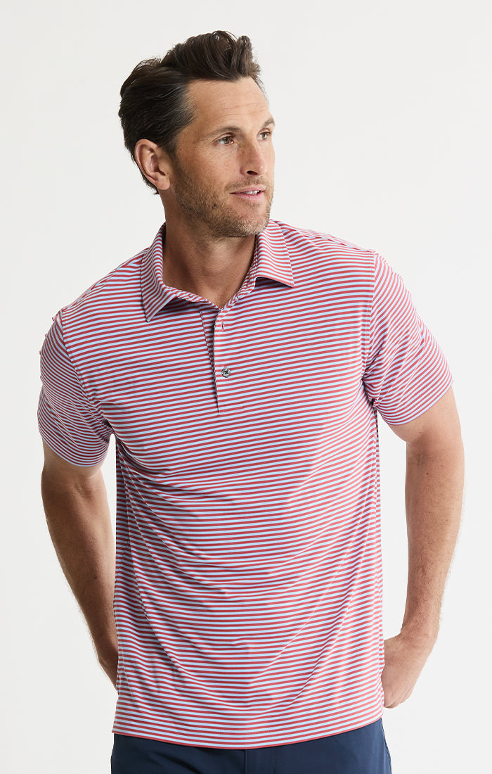 Our Stripe Performance Polo is the definition of an everyday essential. Made from a lightweight, breathable performance blend with plenty of stretch, it keeps you cool, comfortable, and polished from morning meetings to afternoon tee times. The fit is clean, the fabric feels premium, and the subtle stripe gives it an elevated look without trying too hard. Wear it tucked for work or untucked on the weekend - either way, it just works.