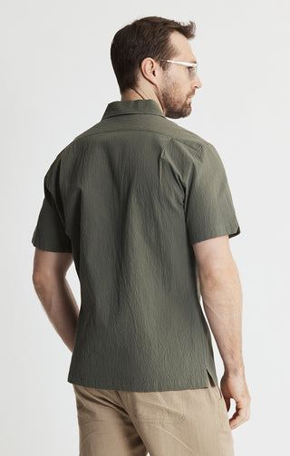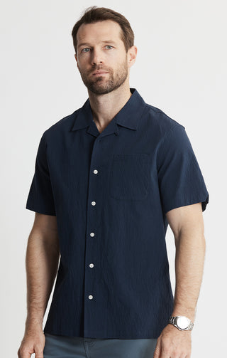 Our signature summer weight breathable seersucker fabric, in a one pocket short sleeve camp shirt body.